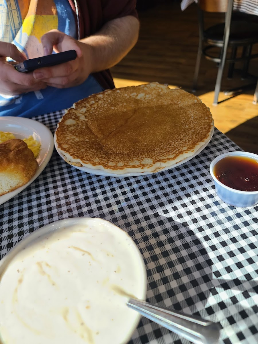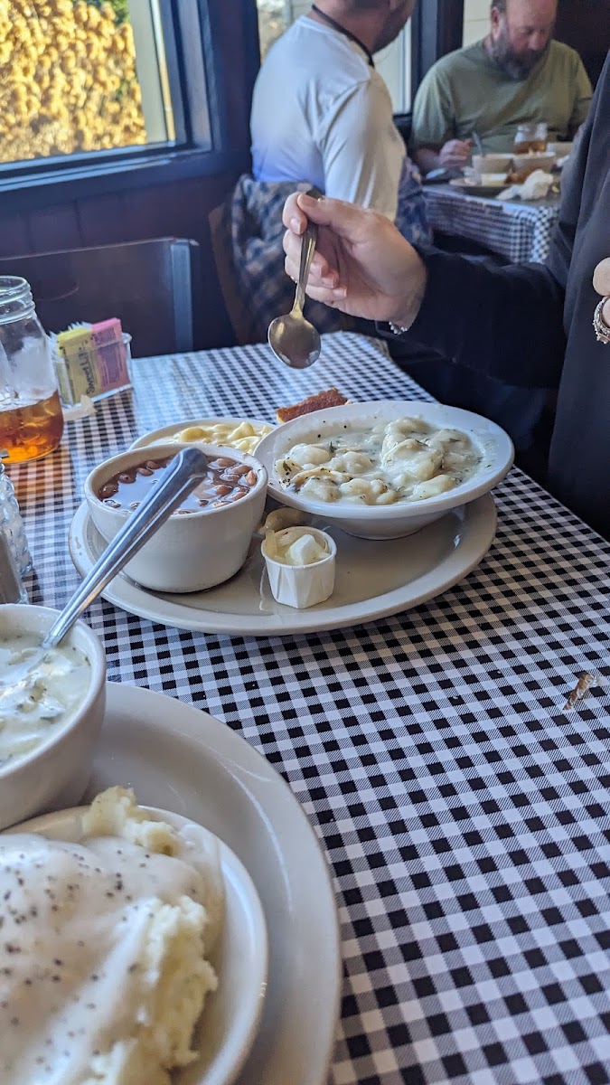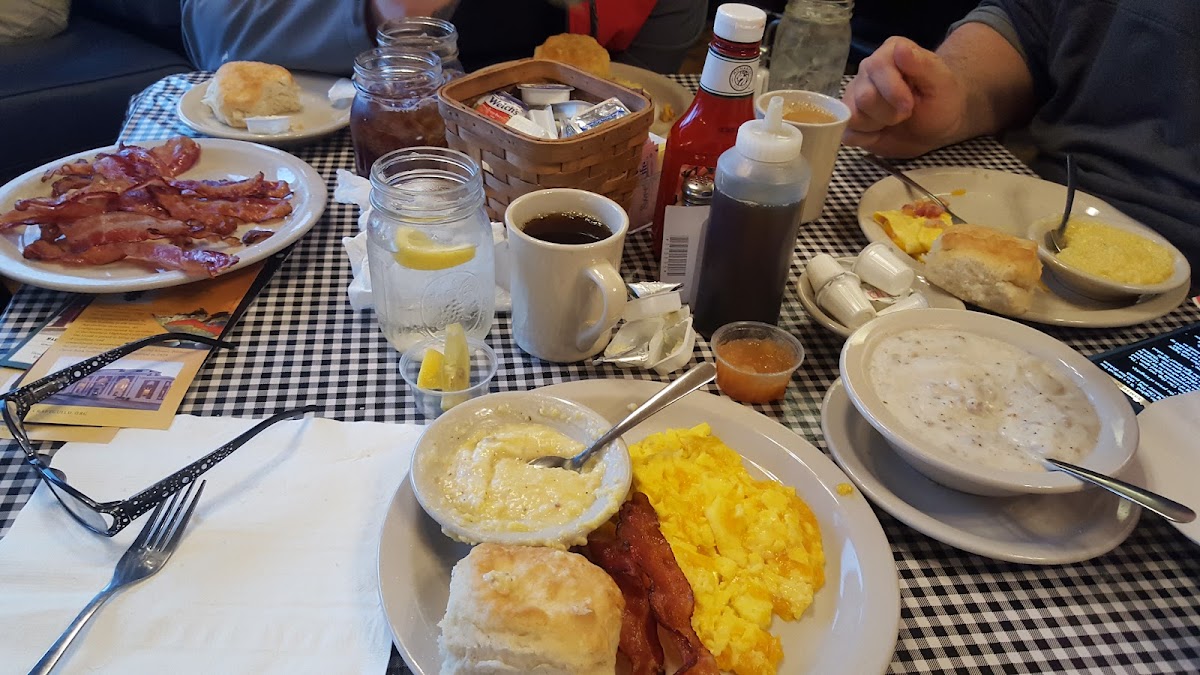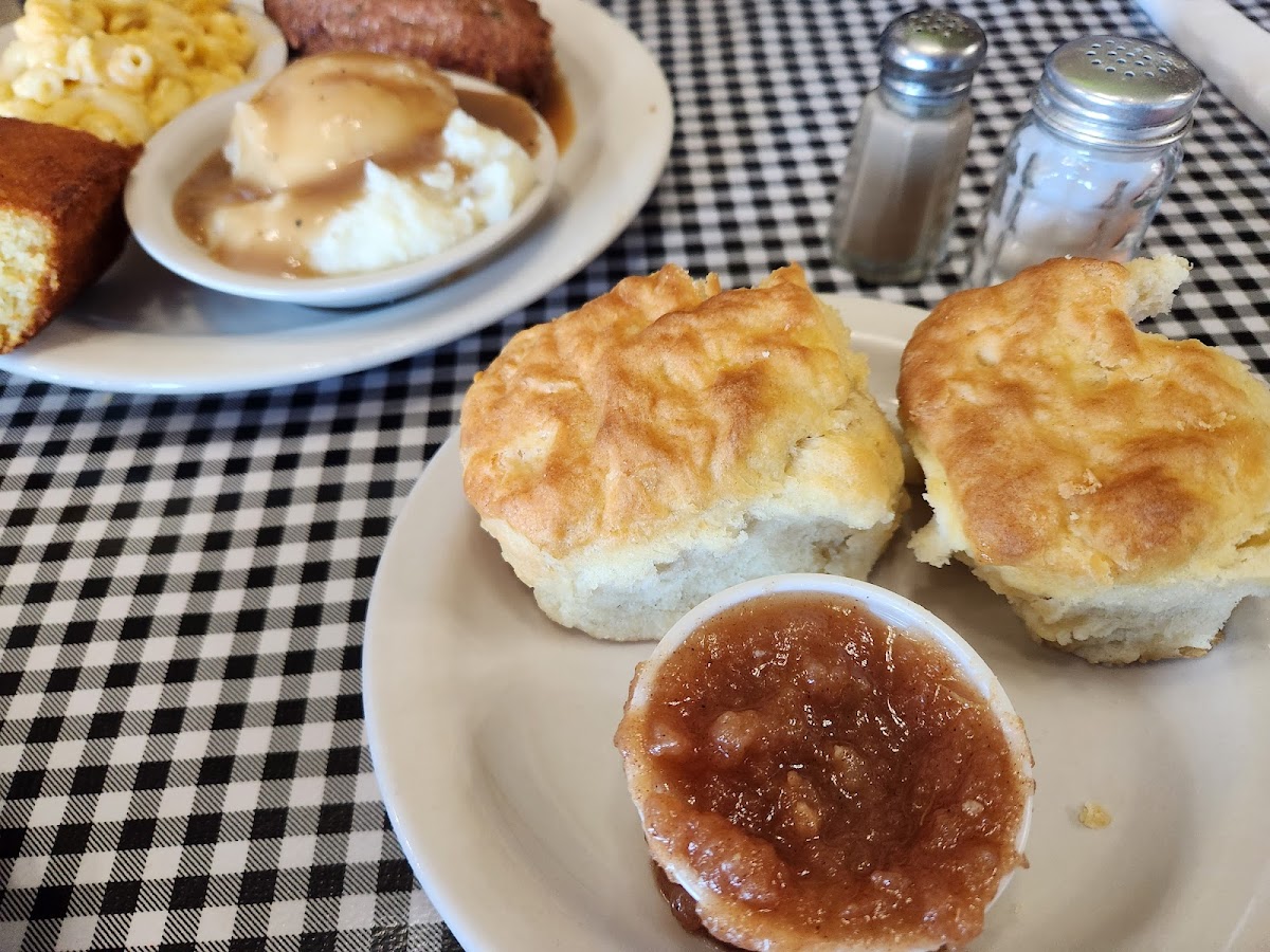 The vibe leans heavily into country cooking, but without feeling outdated or forced. Tables turn quickly, servers greet regulars by name, and the menu reads like a greatest-hits list of Southern comfort food. Biscuits are made fresh throughout the day, a process I watched firsthand as cooks rolled dough behind a glass partition. That detail matters, because texture is everything, and these come out soft inside with just enough crust to hold gravy or butter.